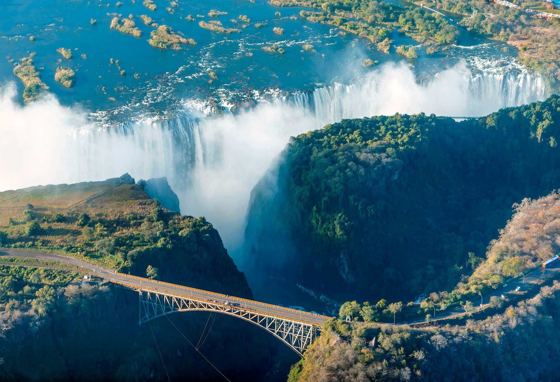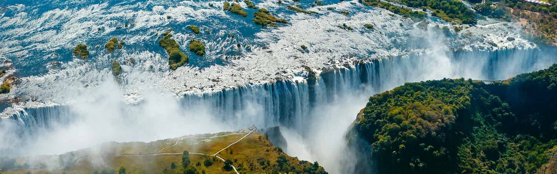Victoria Falls, der løber på grænsen mellem Zimbabwe og Zambia, er verdenskendt for det spektakulære, næsten magiske syn, der møder stedets besøgende. Med et fald på 128 meter fra det højeste punkt og en bredte på 1,7 kilometer betragtes Victoria Falls som verdens største, og larmen fra det brusende vand kan høres på en afstand på op mod 40 kilometer. Blandt lokale omtales det som Mosi-o-Tunya ”The Smoke that Thunders”, og går vi et par århundreder tilbage i tiden, frygtede mange afrikanske stammer kræfterne fra det imponerende vandfald. Denne frygt har dog ændret sig til beundring, og i dag har seværdigheden cirka en million besøgende årligt.
