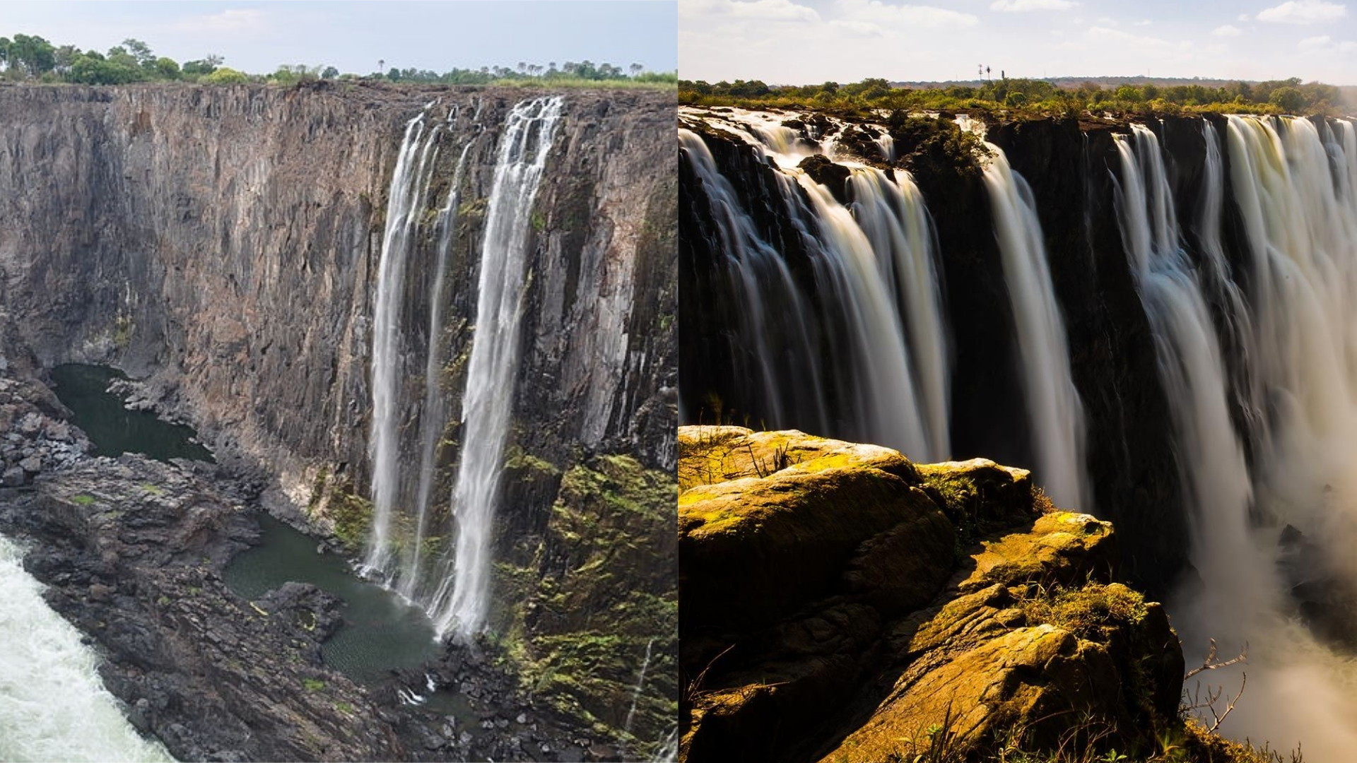 Som så mange andre naturfænomener er Victoria Falls påvirket af årstidernes lunefulde omskiftelighed. Når vandmængderne er på sit højeste omkring april, styrter hele 320 millioner liter vand ned i dybet hvert minut. Omvendt er perioden omkring oktober og november det tørreste tidspunkt, og derfor er de nyeste billeder af det stort set tørlagte (er det kun noget man siger om alkoholikere??) Victoria Falls ikke noget nyt syn. Vandmængderne i Victoria Falls har altid varieret stort henover året, mens den laveste vandstrømning blev målt i 1995-96.
