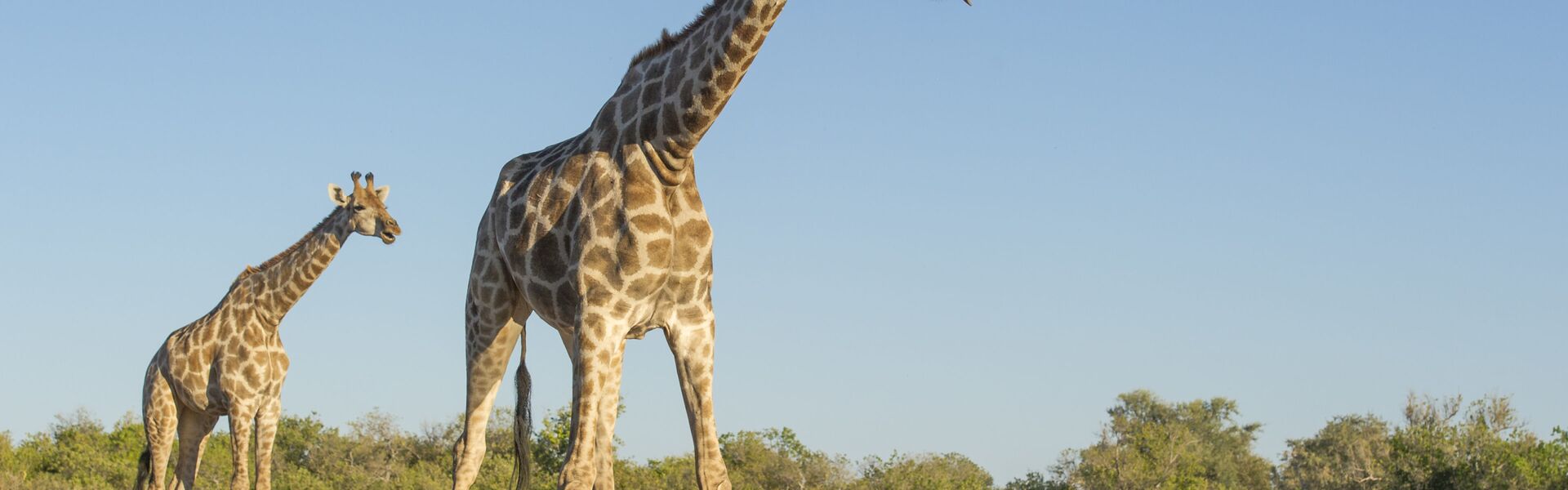 Alle elsker giraffen, og det er for de fleste et af de mest eftertragtede dyr at opleve på en safari. Det overrasker ofte folk, hvor høj giraffen egentlig er. En fuldvoksen hangiraf måler nemlig op til hele 5 meter i højden! Giraffer har et særligt led der gør, at de kan vippe hovedet vertikalt. Denne funktion kombineret med dyrets 35 cm lange tunge, som gør det muligt for giraffen at spise blade fra selv en tornbeskyttet gren, giver savannens højeste dyr en klar fordel sammenlignet med andre planteædere. Prøv at forestille dig en fantastisk udsigt giraffen har, for ikke at nævne fordelen ved at kunne holde udkig efter rovdyr i sådan en højde. Fordi giraffen qua dens højde har så god sigtbarhed, er det ikke usædvanligt at f.eks. zebraer ”hænger ud” i nærheden af den, så de også kan få fordel af giraffens udsyn. Ja, selv vi mennesker drager nytte af giraffens evne til at holde udkig, for hvis den stirrer intenst i en retning, så kan man være ganske sikker på, at der er noget der, som er værd at undersøge nærmere.