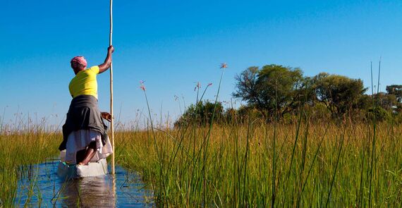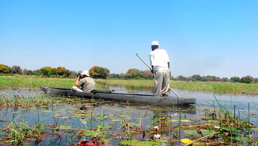 Which animal characterises, or is the highlight of, a safari in the Okavango rather depends on where you stay. Here you can find both so-called “wet camps” and “dry camps”, if it is possible for you to do so staying in a combination of the two would be ideal. In the wetter areas the focus in on safaris in motor boats and in the so-called Mokoros - dug out canoes traditionally made from tree trunks, that can be polled silently through the swallow water.