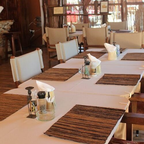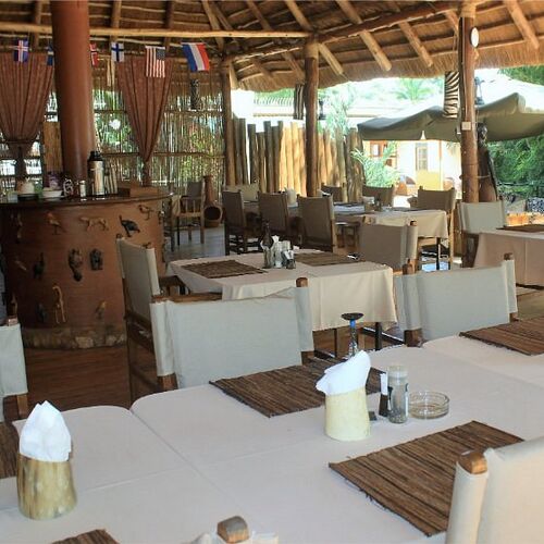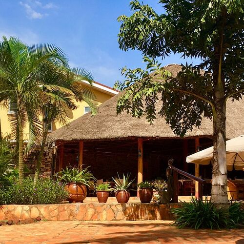 Gæsterne kan nyde en europæisk morgenmadsbuffet med frisk brød, frugt, oste, hjemmelavede marmelader, æg, friskbrygget ugandisk kaffe og meget mere. Måltider fra restauranten kan serveres i spiseområdet, ved poolen eller på værelset. Den nærliggende All Friends Restaurant er også let tilgængelig via en privat indgang for gæster.