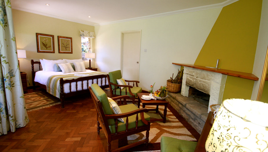 Accommodation is provided in rooms in 22 cottages and a standard suite, all with their own bathroom, shower and balcony. All the cottages have spectacular views to the north, over-looking the Solio Game Sanctuary which has both the black and white rhinos. On a clear day one can view the Aberdare ranges to the west and Mount Kenya to the East, while surrounded by herds of wildlife grazing around you in the club’s own animal sanctuary, the 1300 acre reserve, the Aberdare Country Club Game Sanctuary, which has both a rich animal and bird life. The club has both a restaurant and bar.
