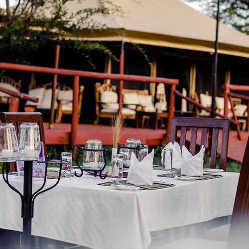 Efter en spændende dag med at observere det lokale dyreliv er baren og loungen på Acacia Central Camp det perfekte sted at slappe af og socialisere, skabe nye venskaber og dele historier om dagens eventyr, med en forfriskende cocktail i hånden. Et ideelt sted at reflektere over dagens oplevelser og danne nye bekendtskaber.