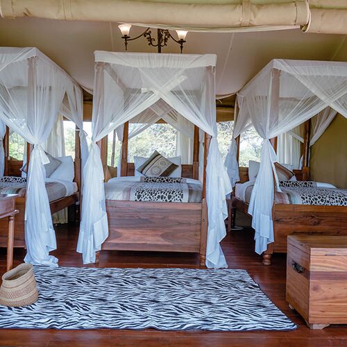 Tresengs værelset, med tre senge, rummelig veranda, skrivebord og sofa, imødekommer grupper af venner eller familier, der ønsker en autentisk safarioplevelse. Beliggende på de åbne marker i Acacia Central Camp, bringer det dyrelivet tættere på gæsterne.