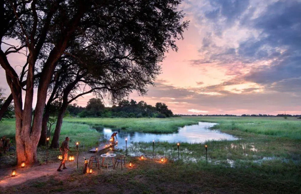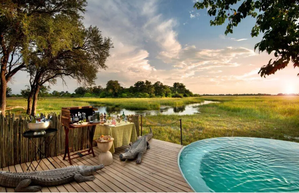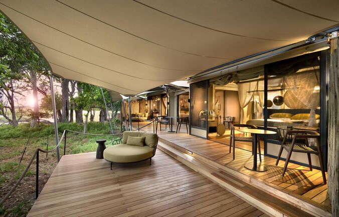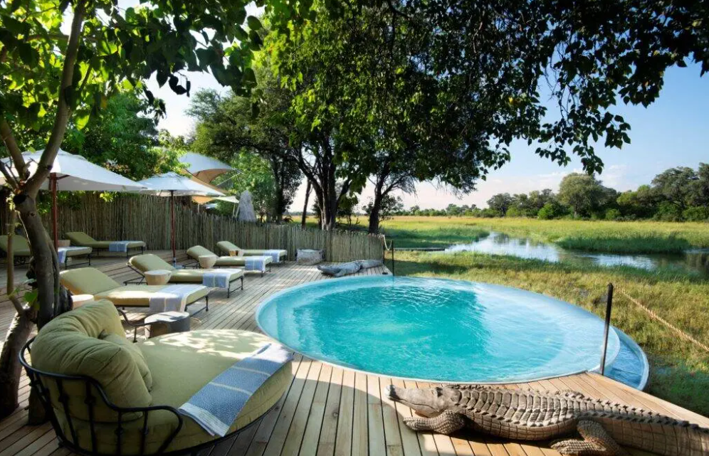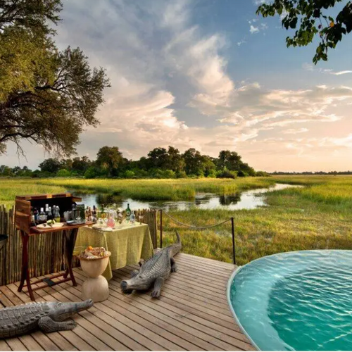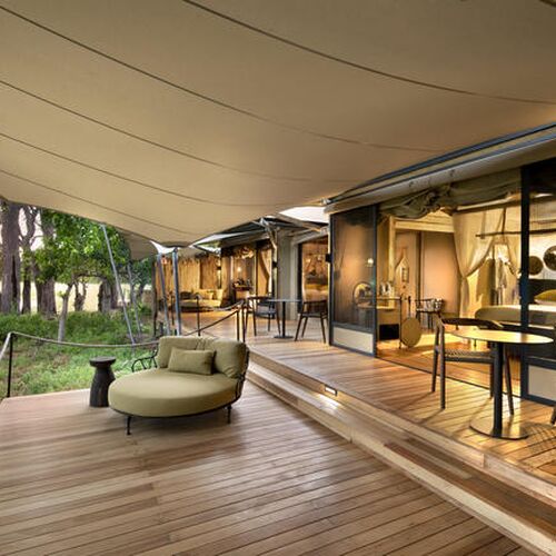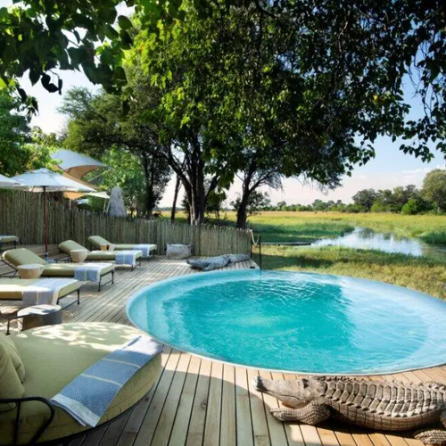 Campen er prydet med farver og accenter, der afspejler Botswanas autentiske ånd, der smelter sammen med de varme jordfarver og de livlige grønne nuancer i Okavango-regionen. Slap af på luksuriøse solsenge ved swimmingpoolen i fredelige og indbydende omgivelser, hvor du kan slappe helt af og nyde den vidtstrakte udsigt over floden. Nyd loungen, spiseområde og læsehjørne, der alle er designet med komfort og ro i tankerne. Afslut din aften ved ildstedet, hvor du kan slappe af under den stjerneklare himmel og nyde varmen fra bålet.