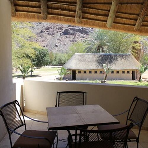 Ai Ais Resort i Fish River Canyon, Namibia, tilbyder kvalitetsindkvartering og er et fremragende sted at slappe af omkring termiske bade og opvarmet swimmingpool. Ai-Ais, som betyder "brændende vand" på et af de lokale sprog, henviser til de svovlholdige varme kilder, der findes i dette område.
