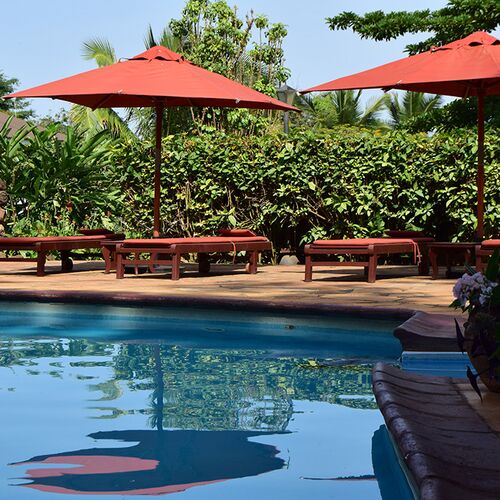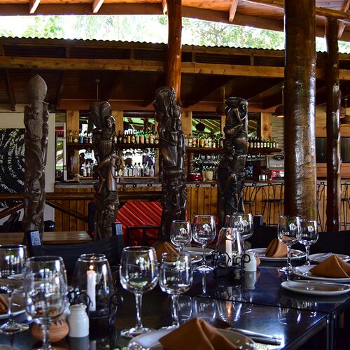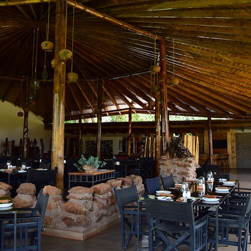 Området for spisning er udsmykket i den bedste afrikanske stil. Restauranten tilbyder et udvalg af afrikanske og internationale retter. De tilbyder samtidig også en omfattende snackmenu, som også kan nydes ved poolen.