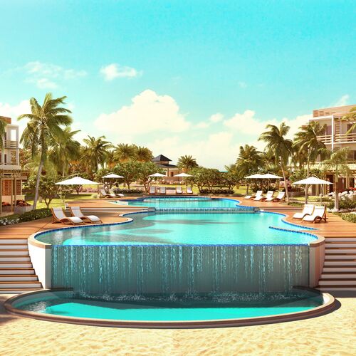 På land er der 2 Infinity-pools, fitness center, game room, tennisbane, aqua-gym, beach-volley og yoga-klasser.