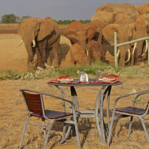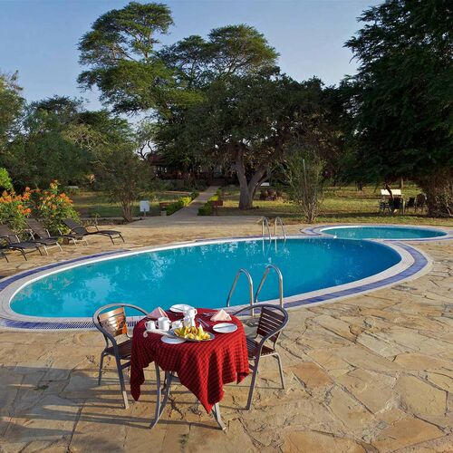 Only a couple of hours drive from the major harbour town of Mombasa and the beaches of the Indian Ocean, lies Aruba Lodge in Tsavo National Park. The lodge is situated next to Aruba Dam, which is a natural assembly point for the varied local animal life, which you can often see directly from the lodge.