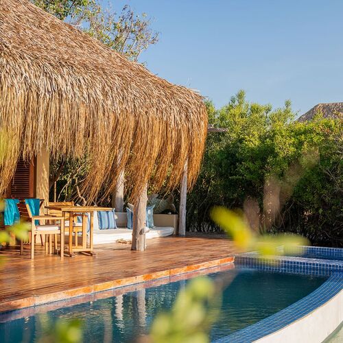 Azura benguerra Island tilbyder et udvalg af forskellige airconditionerede villaer, der alle er omhyggeligt placeret og designet for at optimere udsigten over det turkise hav, adgang til stranden og en følelse af afsondrethed. Moderne faciliteter og omhyggeligt udvalgte luksusindretninger er kombineret med en strand-chic, mozambikansk flair. Hver villa har en privat pool, Beach Sala(udendørs loungeområde), solbadningsdæk, komfortable udendørs sofaer og spisebord, samt en privat butler-vært.