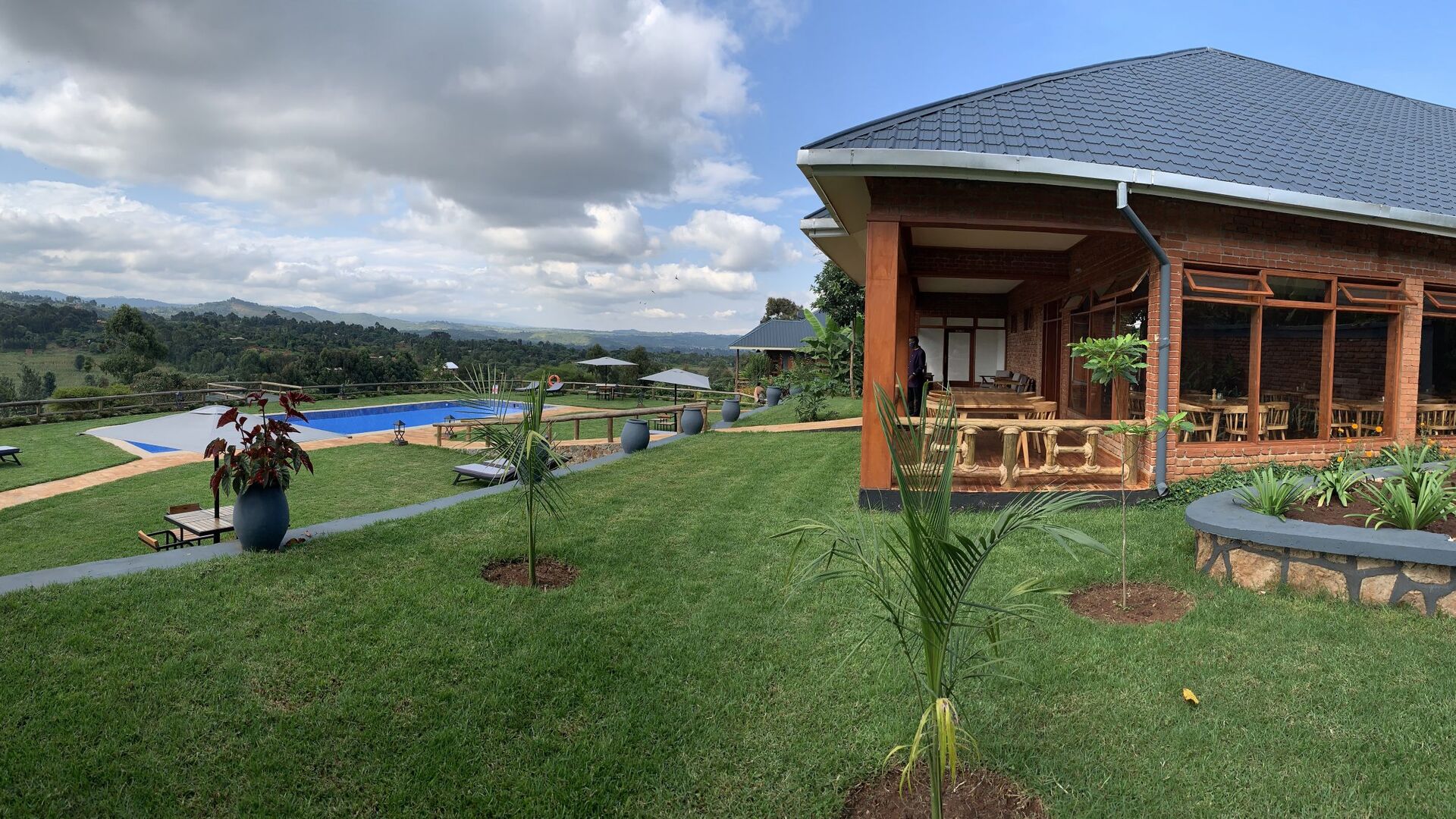 Hele lodgen er omgivet af frodige haver og ligger i en aktiv, fungerende kaffeplantage. Der er frugttræer, urte- og grønsagshaver. Fælles området består af receptionen, en stor lounge med bar og pejs og en spisestue. Verandaen har en fantastisk udsigt til udendørs spisning eller afslapning med en kop kaffe. Den store swimmingpool (velegnet til omgange) er omgivet af frodige grønne græsplæner, med liggestole og parasolborde. Coffee Garden Spa ligger i et roligt hjørne af ejendommen med mulighed for flere behandlinger og afslapning på højt niveau.