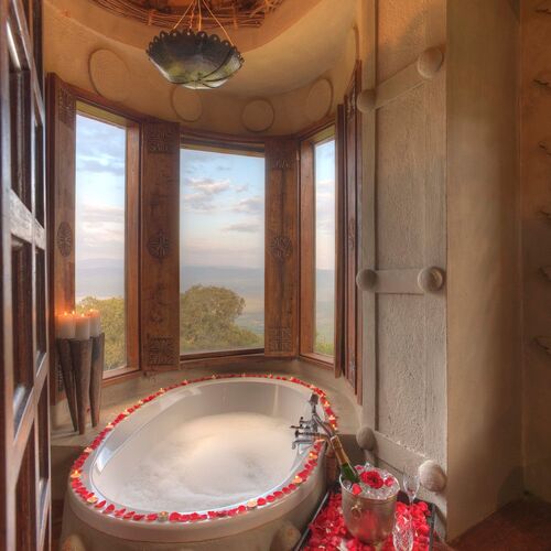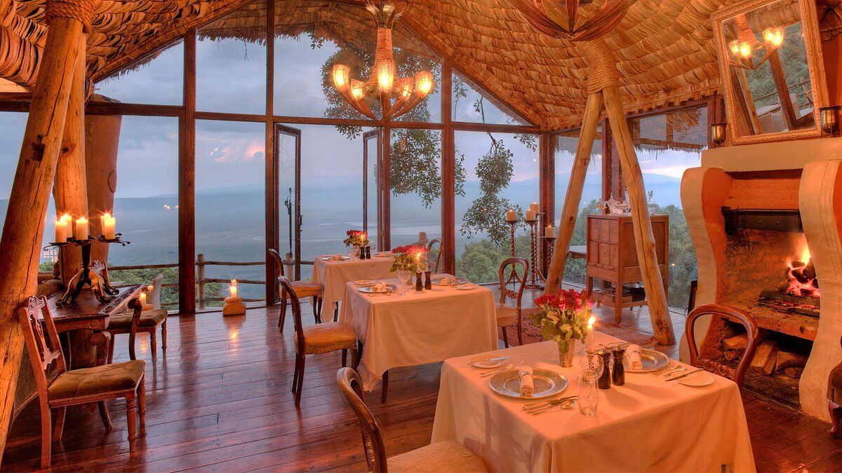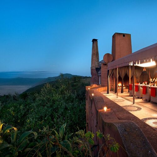 Gennem vinduerne i suiterne åbenbarer sig en betagende udsigt, et sandt mesterværk. Over den kølende dis stiger lodgen over Ngorongoro Craters kant og tilbyder udsigt, der ofte beskrives som mødet mellem Maasai og Versailles. Hver lejr har sine egne opholds- og spiseområder samt udsigtsdæk, der lader gæsterne suge de spektakulære panoramaer til sig.