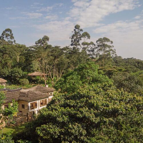 Lodgen ligger ca. 1.475 meter over havet og kan nås med en times flyvning fra Entebbe eller gennem smukke bilture fra andre lodges. Klimaet er mildt året rundt, med dagtemperaturer mellem 15-27 °C.
