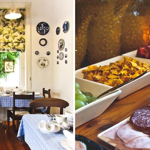 Der tilbydes overnatning med morgenmad. Da der er en række meget gode restauranter inden for nem og sikker gåafstand, har man på Caledon valgt ikke at servere aftensmad.