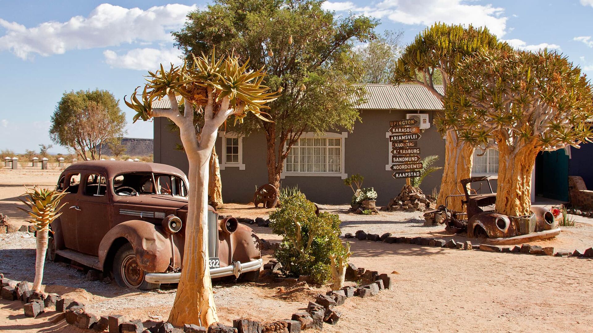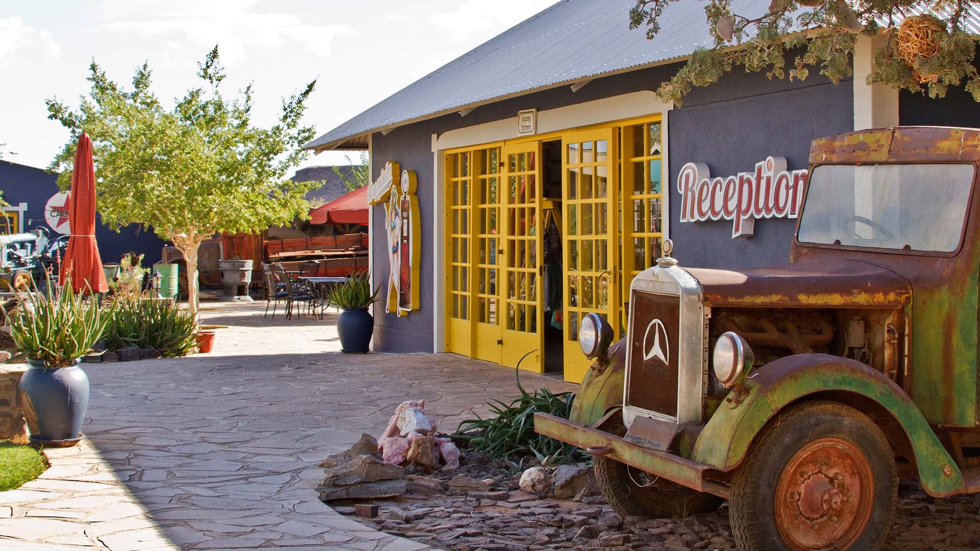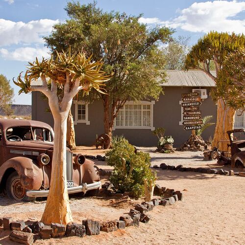 Nyd et unikt og charmerende ophold på denne usædvanlige lodge, der ligner en gammel vejcafé. Lodge'en er som en skattekiste fyldt med sjæl og charme, og et absolut 'must-visit' stop, når du udforsker kløften. Det udvendige område afspejler den eventyrlige atmosfære indenfor med sine antikke Chevys og Fords fra en svunden æra, omgivet af smukke quiver-træer og ørkenens flora. Parkér din bil og træd indenfor.