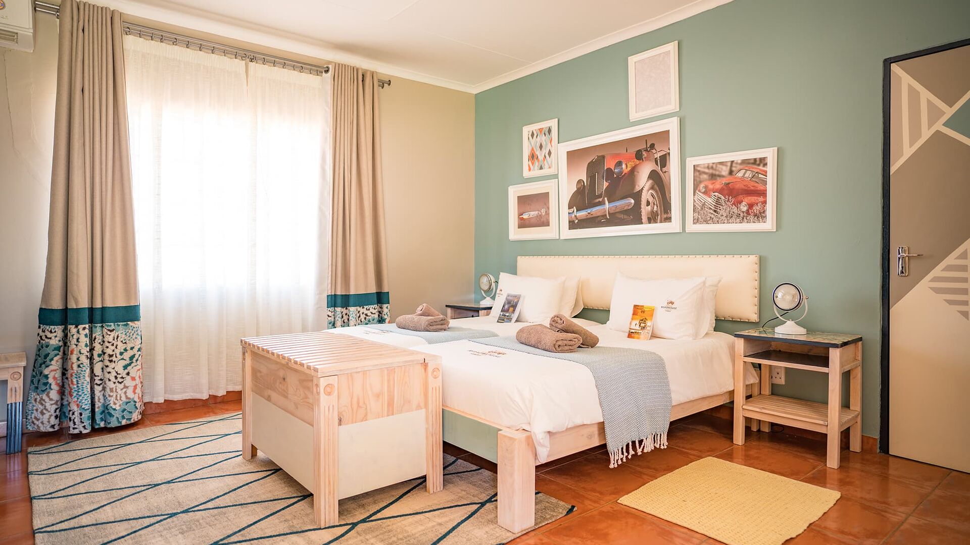 Twin Room: Værelserne er rummelige med to enkeltsenge, eget badeværelse, aircondition og te/kaffe-faciliteter. Vi har 2 værelser med to enkeltsenge med en sammenhængende dør - venligst spørg for at reservere som et familieværelse.