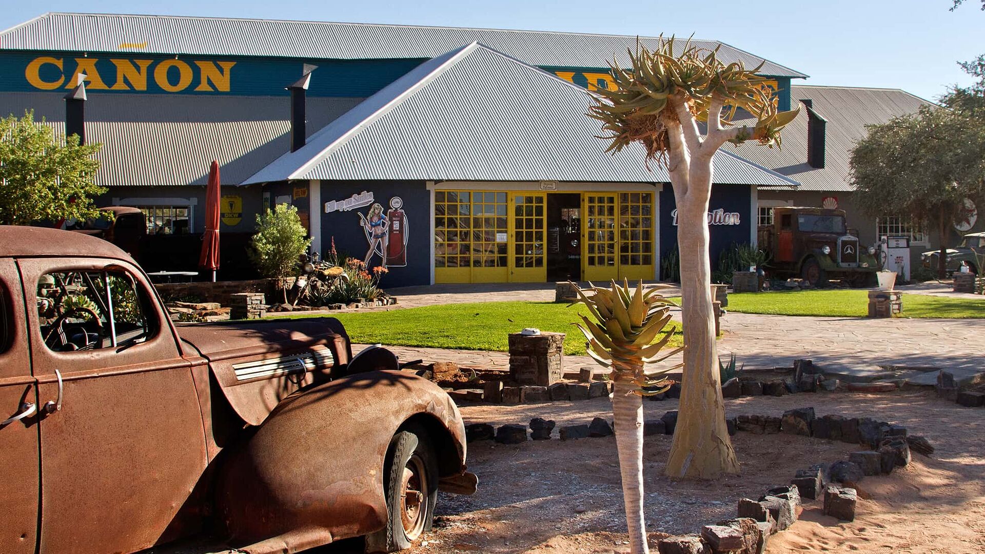 Canyon Roadhouse tilbyder mere end bare et fascinerende interiør. De rummelige og attraktive værelser, der ligger omkring charmerende gårdspladser, gør Roadhouse til en komfortabel og praktisk base, når du udforsker Fish River Canyon, der kun ligger 14 kilometer væk. Her finder du også en swimmingpool, en campingplads og en dejlig terrasse, hvor du kan nyde Roadhouse's særlige retter.