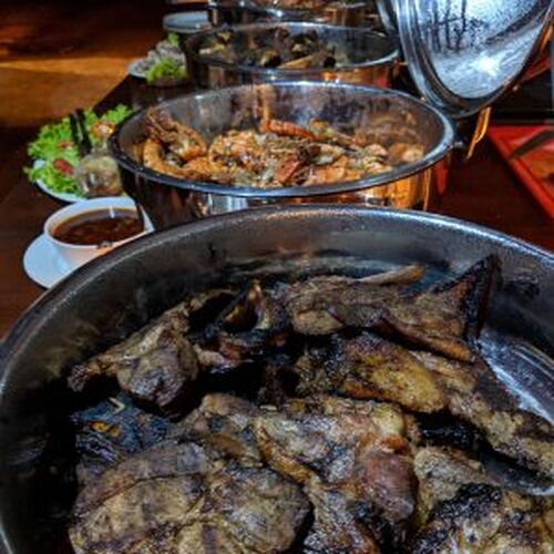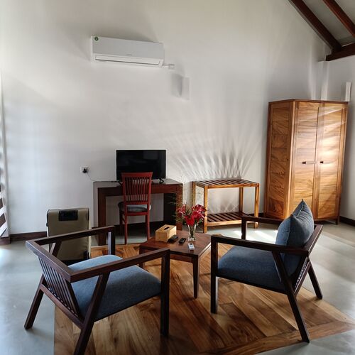 Der er et fælles spise-opholdsområde, hvor værten tilbyder flere menuer. Her serveres morgenmad, frokost, aftensmad og der tilbydes srilankansk eller vestlig menu som det ønskes. Vi opfordrer til at prøve det Srilankanske køkken, husk dog at bede om ”less spicy” hvis du ikke ønsker det alt for stærkt.