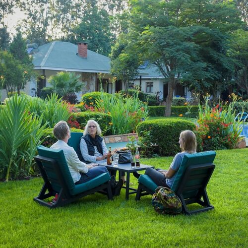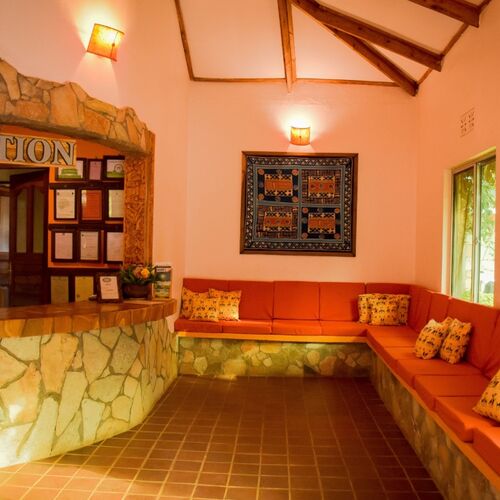 Hovedbygningen huser receptionen og en attraktiv højloftsbar, spisestue og lounge med pejs. Wi-Fi er tilgængeligt overalt på fællesområderne. Der er også udendørs siddepladser, så havens brise kan nydes sammen med en forfriskende drink. På køligere nætter kan loungen nydes og den brølende ild vil afværge kulden i højlandet. I nærheden af parkeringspladsen findes massagerum og gavebutik. De hyggelige hytter omgiver den funklende swimmingpool, og overalt findes frodigt anlagte haver, der vrimler med fugleliv. Lodgens køkken går efter fra farm til bord konceptet og dyrker så mange ingredienser det er muligt selv.