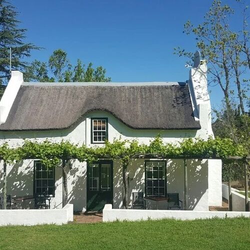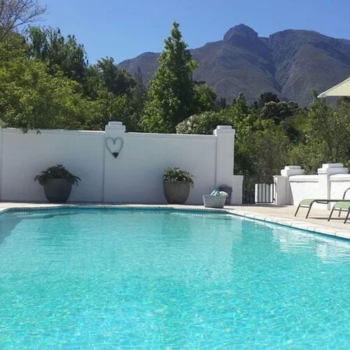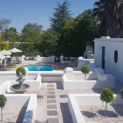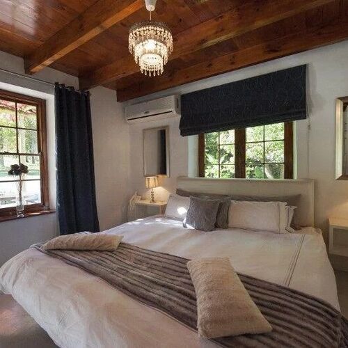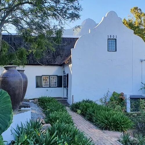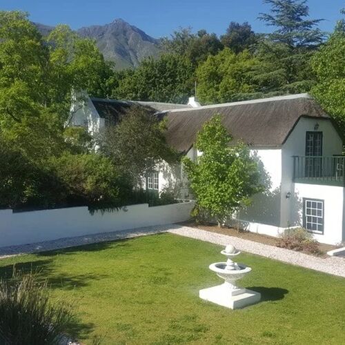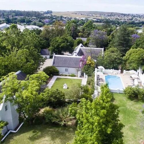 Den private afsondrede ejendom på stor grund ligger i en frodig grøn dal med smuk udsigt over bjergene og grænser op til Marloth Nature Reserve. Dette sikre, perfekte gemmested ligger i gåafstand fra den historiske del af byen og henvender sig også til eksklusiv brug.
