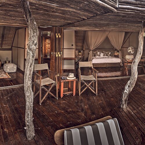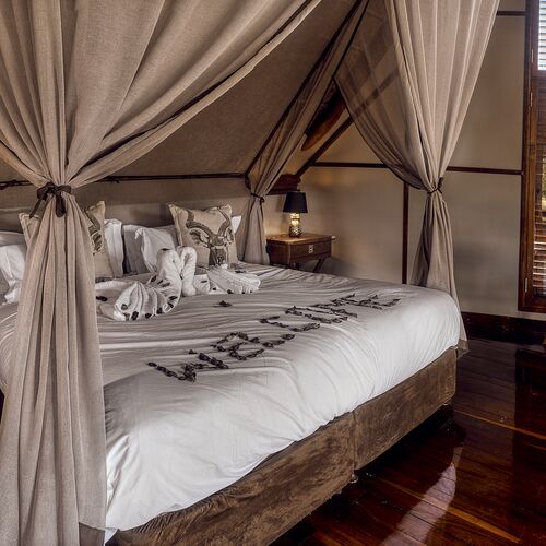 Lodgen tilbyder fremragende service på de faciliteter, der sikrer et behageligt og afslappende ophold. Med en fantastisk beliggenhed med udsigt over vandhullet fra de private udsigtsterrasser har hver af de 8 meget rummelige suiter et soveværelse, separat opholdsstue, en-suite badeværelse og udendørs bruser.