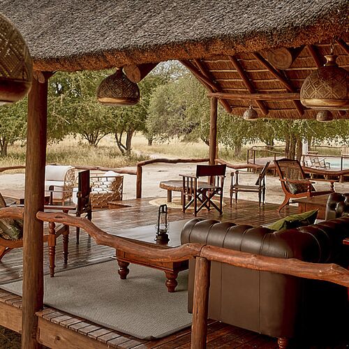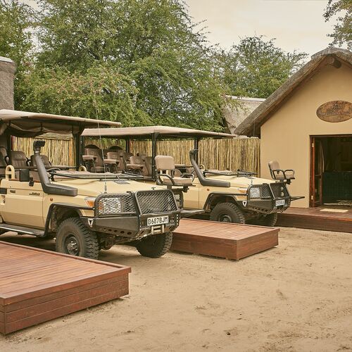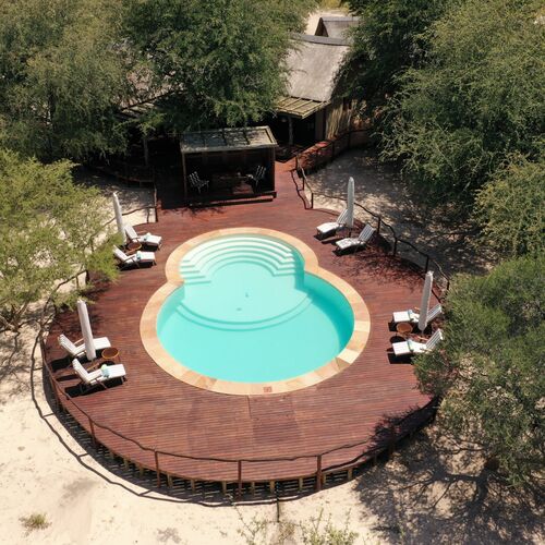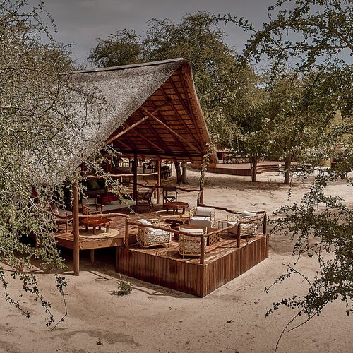 Hovedkomplekset kan prale af en spisestue, lounge og barområde indrettet i varme Kalahari-farver, som gør brug af afrikanske artefakter. Fra dækket kan man se de vilde dyr ved det nærliggende vandhul. Lodgen har et etnisk afrikansk tema og blev bygget til at passe ind i den omgivende busk uden at ændre, beskadige eller forringe dens stemning og farve.
