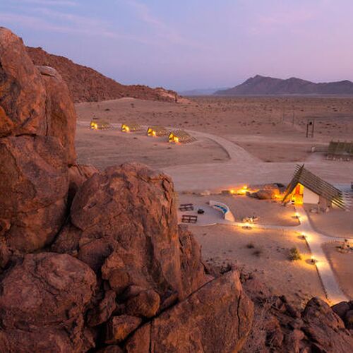 Desert Camp byder på en spektakulær udsigt over ørkenlandskabet og de omkringliggende bjerge - et absolut "must see" for naturelskere og fotografer!