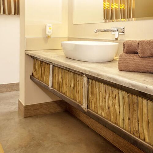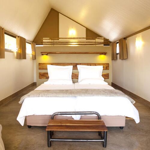Campen består af 28 hytter, der alle er udstyret med eget badeværelse, en skyggefuld veranda og et tekøkken. Alle hytter har aircondition.