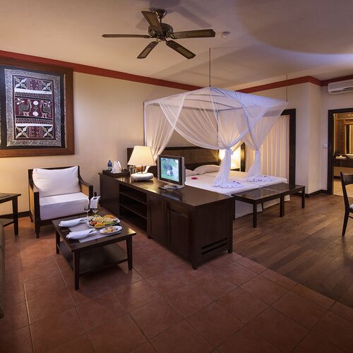 Resortet indeholder 33 junior suiter og 2 suiter, der alle er skræddersyet med italienske designmøbler, badekar, og satilit TV. Hver junior suite og suite har egen terrasse eller balkon med egne liggestole og spabad og udsigt til haven.