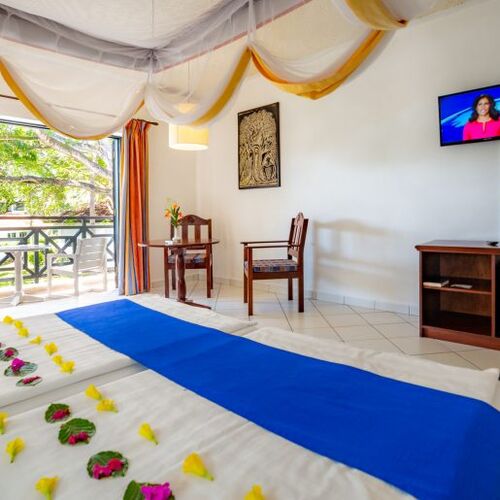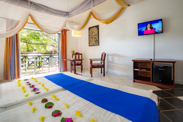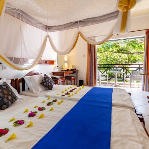 Beliggende ved den smukkeste og mest uspolerede krystalhvide sandstrand på Kenyas sydkyst finder I Diani Beach Resort, der består af i alt 170 værelser fordelt over 3 værelseskategorier: Superior-værelserne med udsigt over haven, Bahari-værelserne med havsuite og suiter med havudsigt. Alle værelser har fladskærms-tv, kaffe- og tefaciliteter. Diani Beach Resort tilbyder familieværelser i hver kategori.