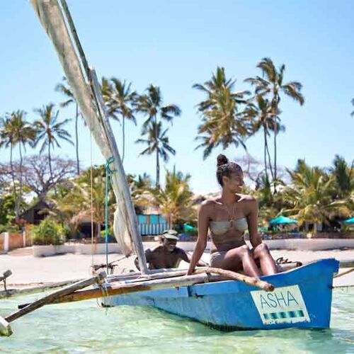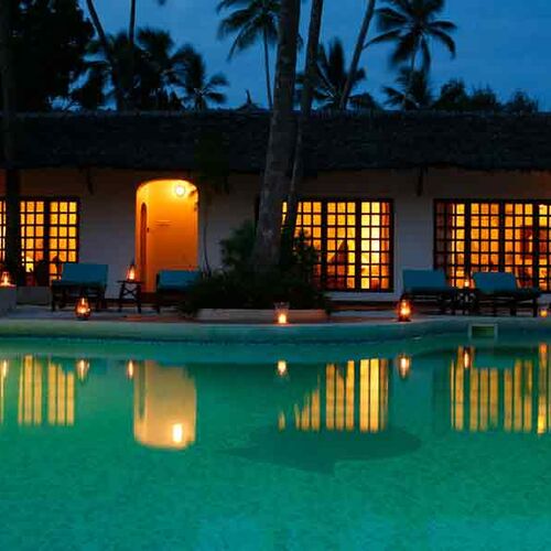 Eksklusivt i koncept, men afslappet i stemning - Diani Blue er indehaver af kun seks rummelige værelser indrettet i Swahili-stil (alle med air-condition), en central pool og udsigt over den sølv-hvide sand på Diani Beach.