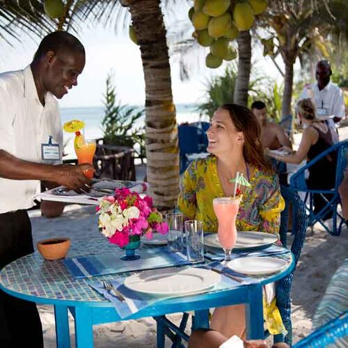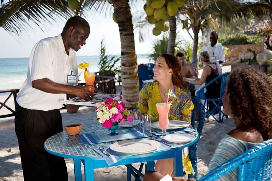 Diani Blue tilbyder en udendørs spisestue-terrasse, en lounge med privat bar, en luftig veranda med udsigt over poolen, badestrand og en palmeformet strandrestaurant - The Edge, hvorfra man har udsigt ud over Afrikas mest berømte bugt.
