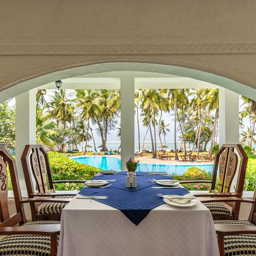 Diani Sea Lodge tilbyder en omfattende all-inclusive pakke med måltider og snacks på følgende tidspunkter: