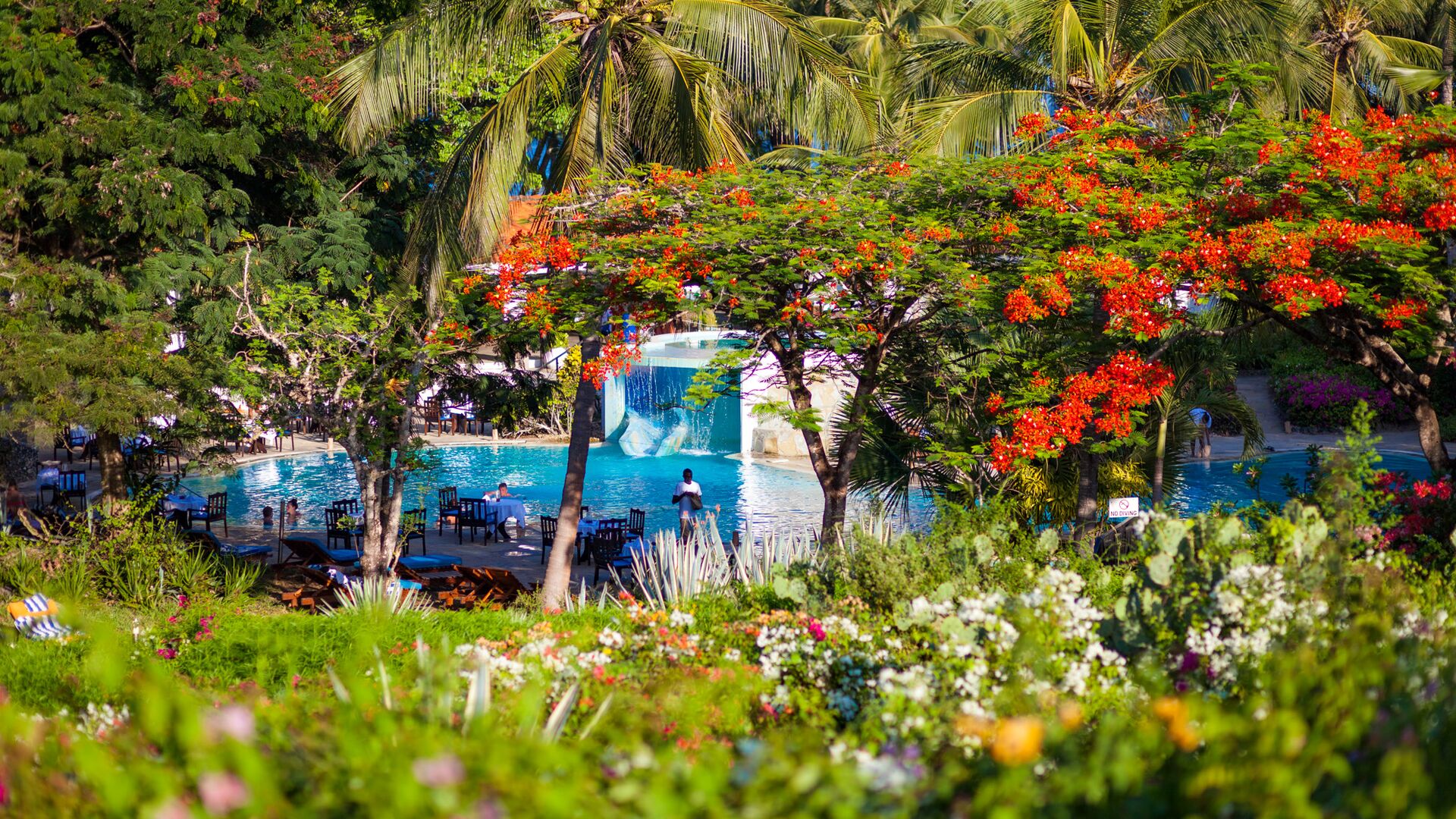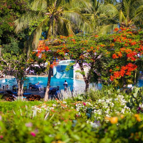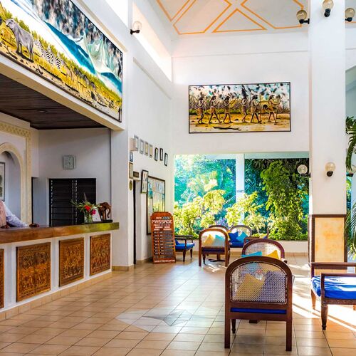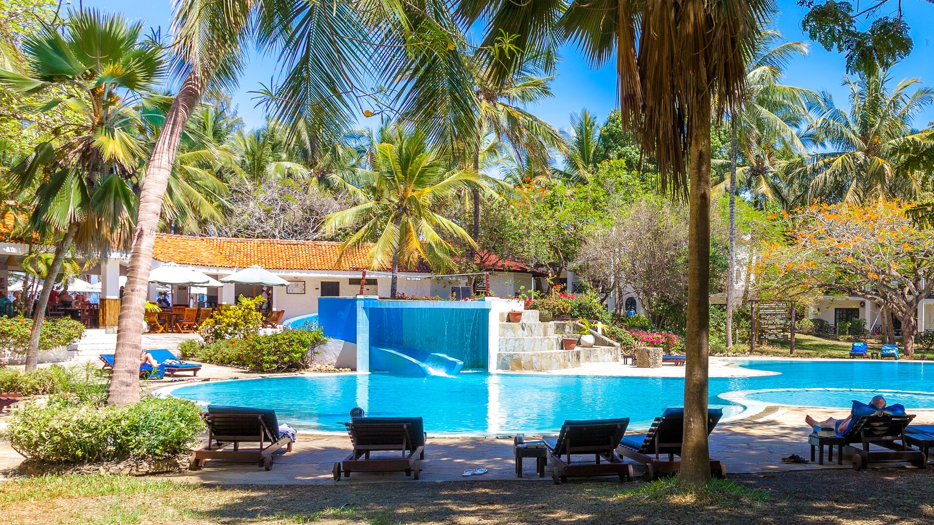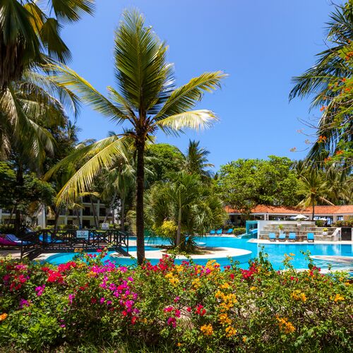 Beliggende på de smukkeste uspolerede krystalhvide sandstrande på Kenyas sydkyst, ligger dette resort i skyggen af kokospalmer samt et utal af eksotiske træer og blomster. Diani Beach resort er alt inklusive og tilbyder det ultimative tropiske paradis. Dyreliv bugner i området, og forskellige varianter af aber kan ses hoppe rundt i nærheden.