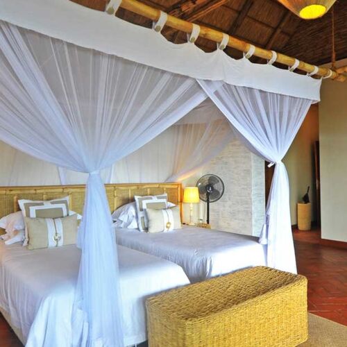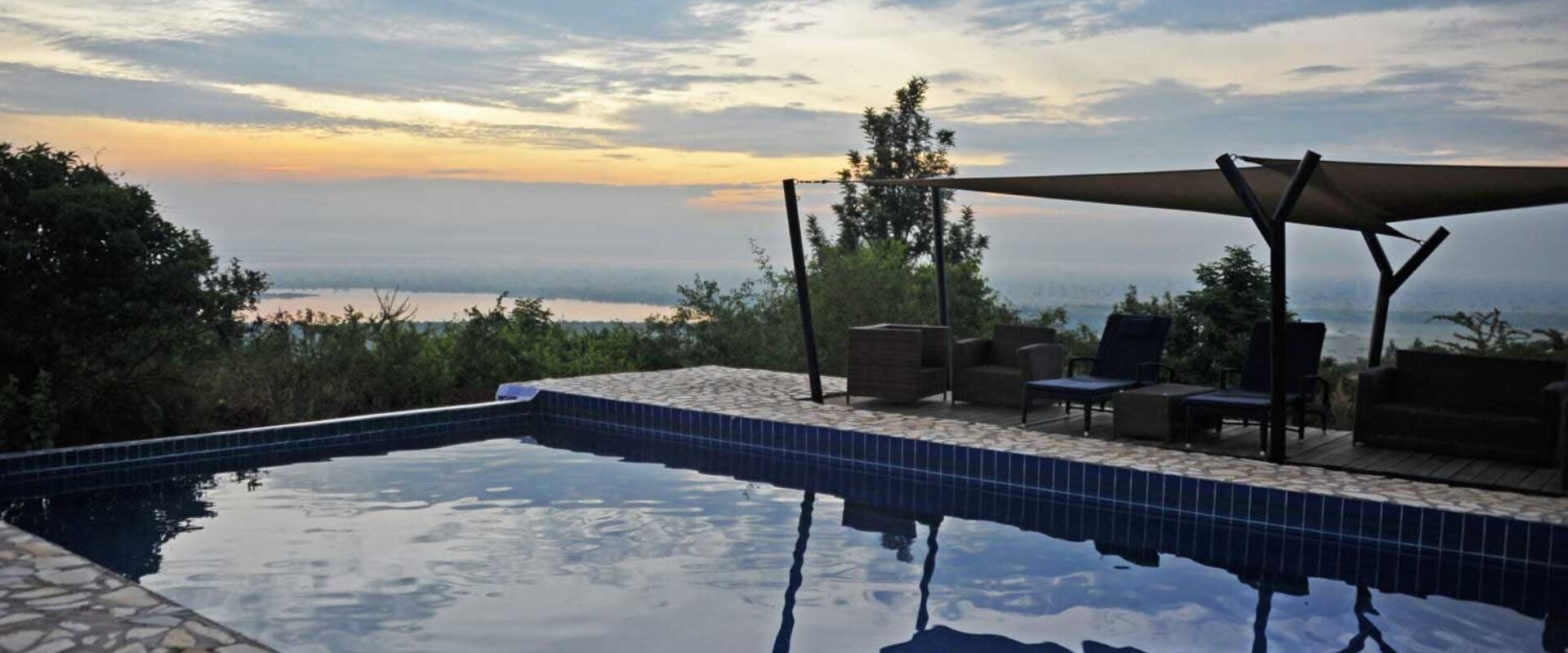 Elephant Plains Lodge er en førsteklasses lodge, der ligger på kanten af Queen Elizabeth National Park, kun 2 km fra Kasese-Kihihi-vejen, hvilket gør den let tilgængelig. Den ligger på en højderyg, hvilket giver gæsterne en spektakulær udsigt over nationalparken, Kazinga-kanalen og de ikoniske Rwenzori-bjerge. Lodgen tilbyder en unik kombination af luksus, komfort og autentiske oplevelser i det vilde Uganda.