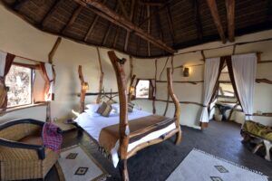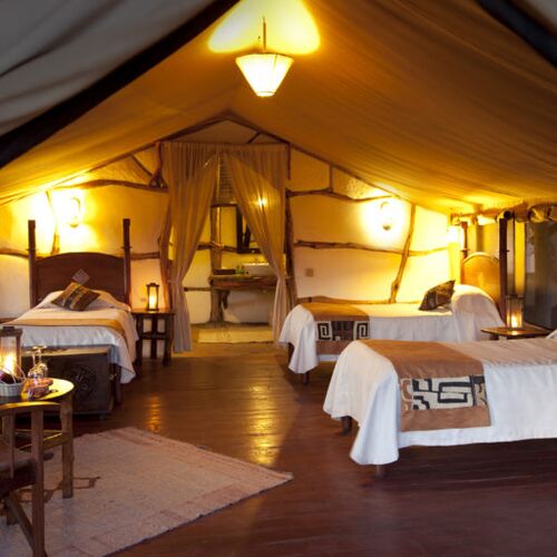 Lejren har 12 bjergvendte deluxe telte og 5 store hytteværelser. Alle værelsestyper har eget badeværelse, hvor hytteværelserne også har luksuriøst badekar udover bruseren. Faciliteterne er med varmt rindende vand leveret af det miljøvenlige solcelleanlæg. Alle værelser er designet til at give dig et ophold i luksus. Hytteværelserne tilbyder elegante indrettede telte med egen private veranda og udsigt over sletterne og Amboseli National Park. I deluxe teltene får du mulighed for at sove under lærred og vågne til den smukke udsigt over Kilimanjaro. Der er mulighed for afkøling i dagtimerne på det store verandadæk.