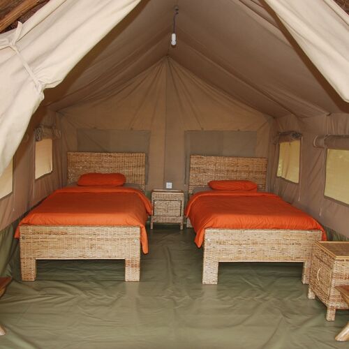 Vores campingplads ligger væk fra hovedlodgen i et buskområde med masser af akacie og lokale træer. Der er to køkkenområder med bålplads og siddepladser. Vand og brænde er til rådighed. Campister kan bruge udendørs brusere lavet af sten og rene toiletfaciliteter.