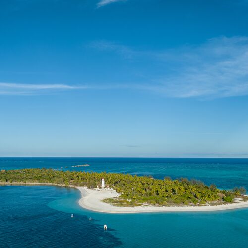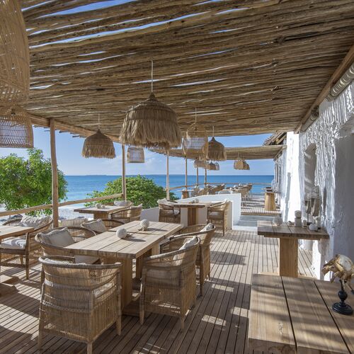 Morgenmad og frokost serveres på den skyggefulde terrasse i det ikoniske fyrtårn fra det 19. århundrede, medmindre du foretrækker charmen ved en picnic på en sandbanke, som kan nås med båd eller intimiteten af en skyggefuld frokost på en af øens jomfruelige strande.