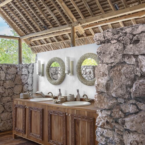Der er i alt 16 eksklusive og lækre strandvillaer, diskret placeret blandt palmer og naturlig vegetation. Samtlige værelser har udsigt over stranden eller havet og har et afslappet miljø med en betagende udsigt. De er alle opført af naturlige og lokale materialer. Tanzanianske plantage teakgulve, traditionelle Makuti tage, koralstens vægge, døre udskåret af håndværkere fra Zanzibar o.s.v. To liggestole venter under en skyggefuld sala trellis. Badeværelserne har både indvendig og udvendig bruser. Der er også en Family Beach Villa med to soveværelser, herunder to enkeltsenge og en sofa (til en 3. person) i børnenes soveværelse.