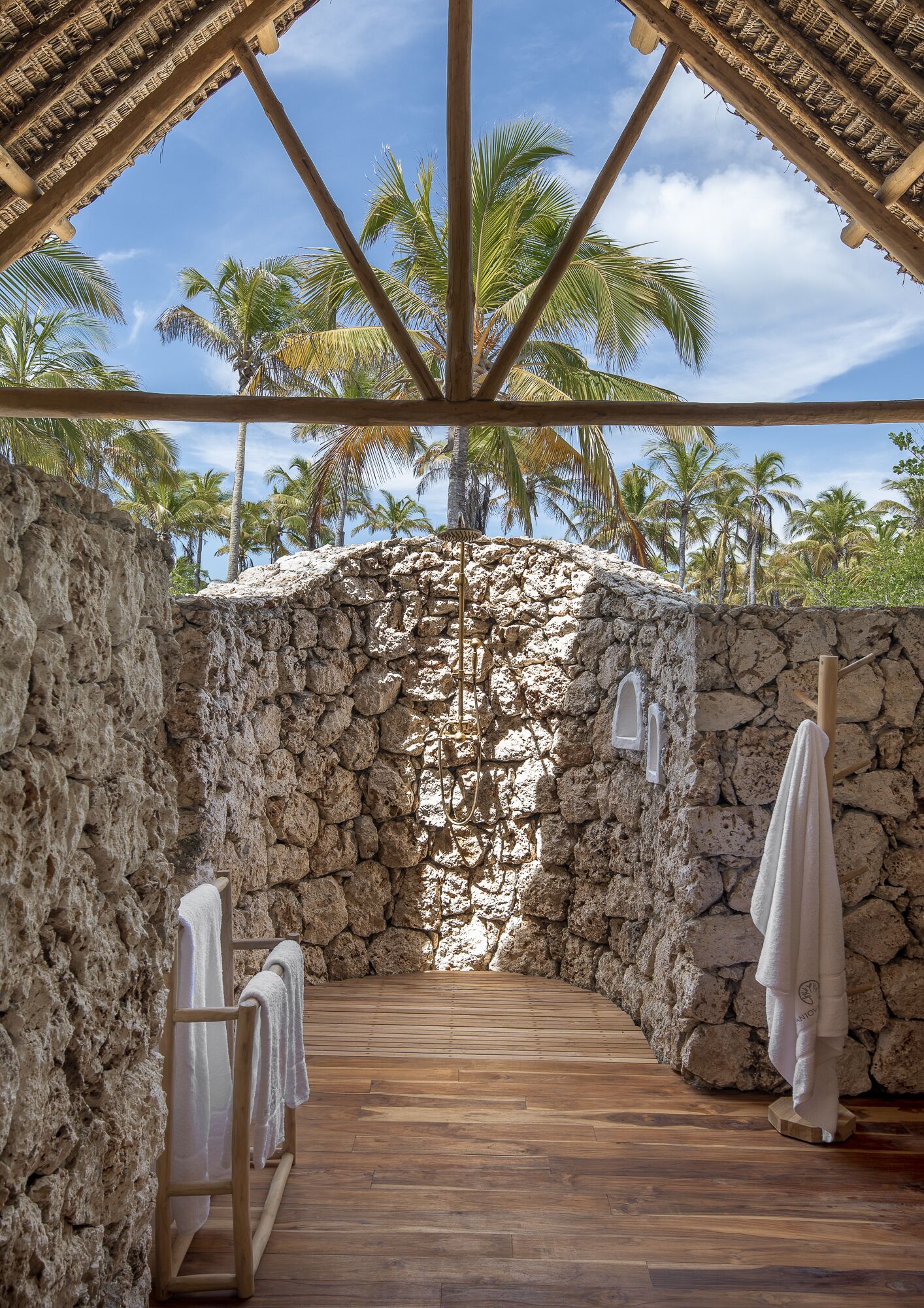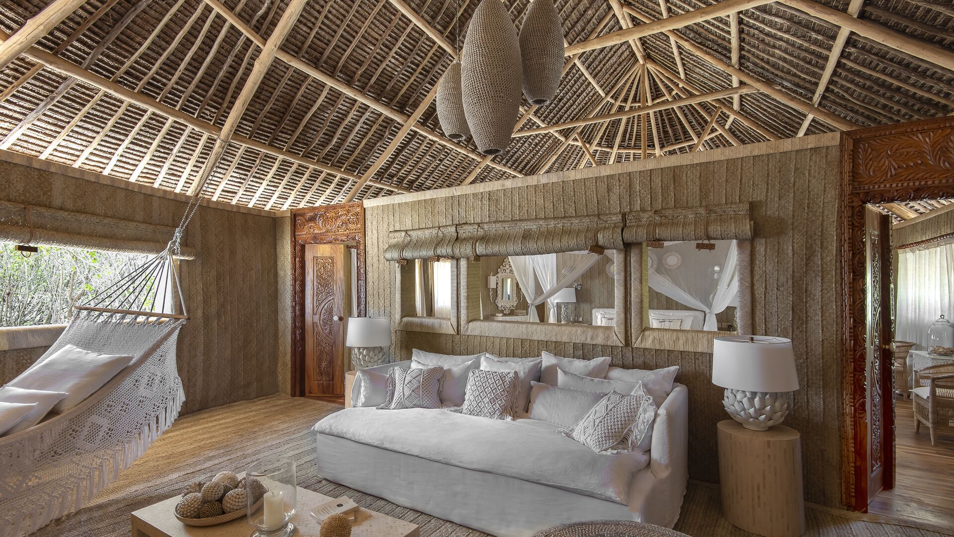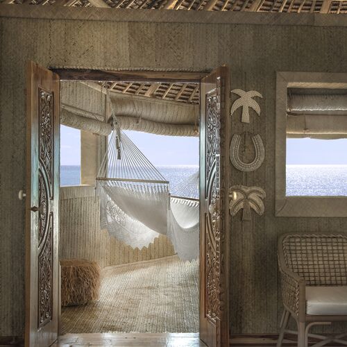 Sengelinned i økologisk bomuldssatin, badekåber i økologisk bomuld, økologiske toiletartikler, hårtørrer, WIFI, minibar og espressomaskine, integrerede vægventilatorer, strandkurve, hatte og fouta håndklæder, Walkie-talkies til at kommunikere med teamet samt flere USB-opladningsudtag.