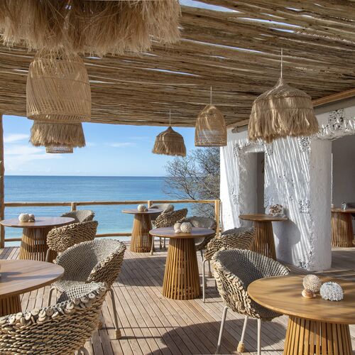 Om aftenen forvandles stemningen til noget magisk. Nyd lyset fra det oplyste fyrtårn eller nyd et bål på stranden. Det er også muligt at spise i privatlivets fred i din villa.