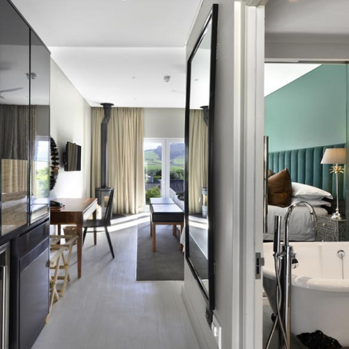 Franschhoek Boutique Hotel byder dig velkommen med 12 individuelt designede værelser, der hver har sin egen unikke karakter. Uanset om du foretrækker en dristig og farverig indretning eller en mere afdæmpet og minimalistisk stil, er din komfort altid i fokus. Værelserne er udstyret med moderne bekvemmeligheder, herunder opvarmning og aircondition for at sikre, at du føler dig hjemme. Du kan se frem til rummelige brusenicher, fritstående badekar og din egen personlige vinkøler.
