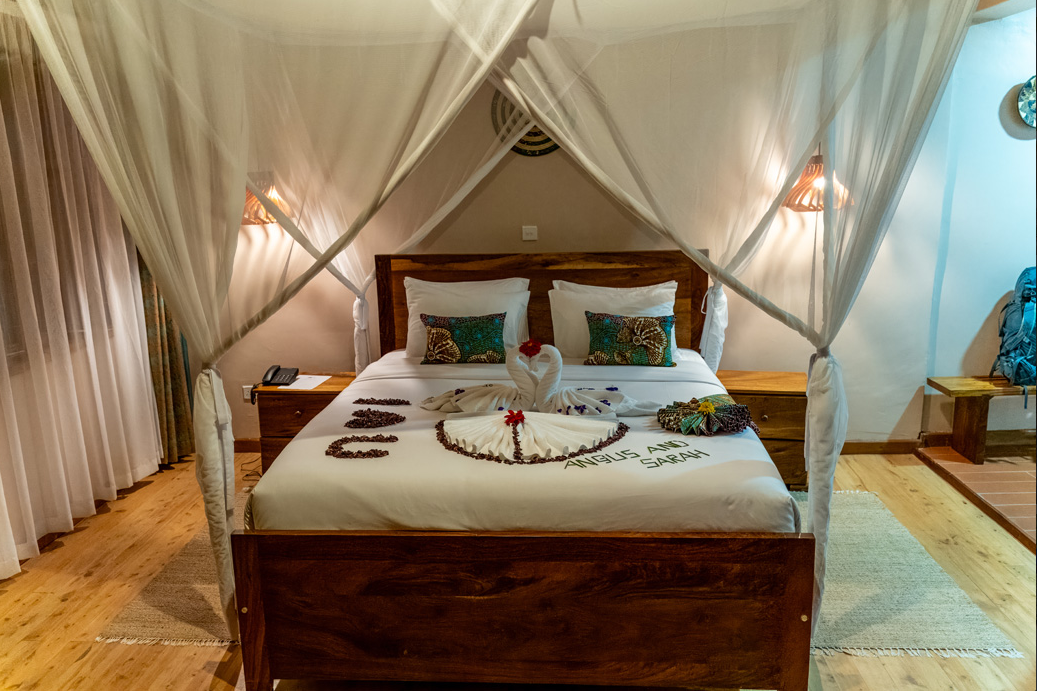 Der er 12 værelser, alle med spektalær udsigt til Bwindi Nationalpark. Alle værelser har en stor balkon, hvorfra man kan sidde og kigge ud på naturen. Der er forskellige muligheder for indkvartering, ligefra deluxe dobbeltværelse til et stort familieværelse.