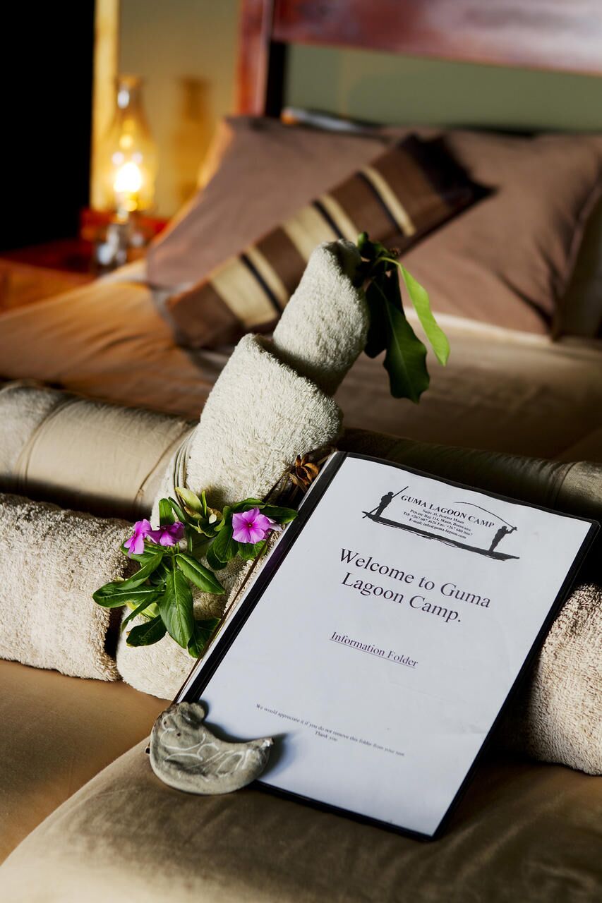 Guma Lagoon Camp is situated on the on the north-western side of the Okavango River along the banks of the Guma Lagoon in Botswana. The lagoon is also home to an abundance of birds and water fowl which you can view from the comfort of your accommodation, or from a traditional dugout canoe on a Mokoro excursion.