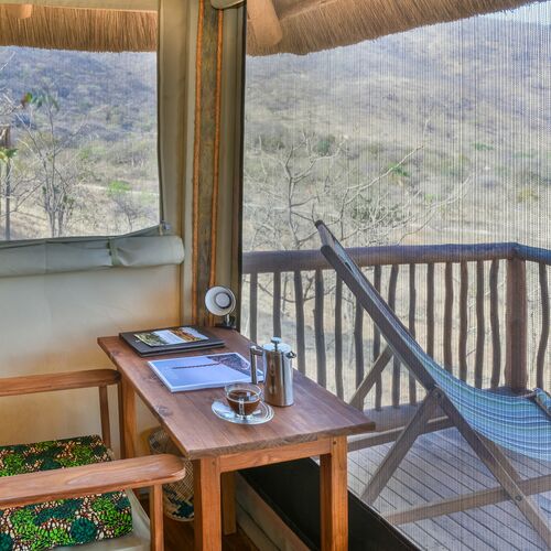 Den nye søster camp til vores populære Hodi Hodi Beach Houses på Zanzibar er beliggende to timers kørsel fra Iringa, og en afvekslende køretur gennem landsbyer og skove bringer jer til denne intime og luksuriøse bush camp, som er opført på et hesteskoformet højdedrag med fantastisk udsigt til det omkringliggende vildtreservat samt Ruaha National Park. Der er i alt 7 teltsuiter, som alle har panoramaudsigt ud over bushen. Der er 4 dobbelttelte og 3 familietelte, beliggende med god afstand imellem hinanden og på hver sin side af hovedhuset med opholds- og spisefaciliteter. Familieteltene består af to sammenbyggede teltsuiter med et loungeareal imellem. Disse vil være helt ideelle for en familie eller f.eks. to gode vennepar.