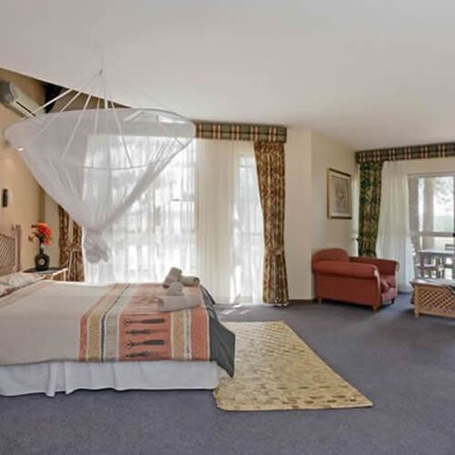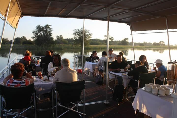 All the attractive rooms are nicely furnished and offer a bathroom, toilet and air-conditioning. The lodge also offers great meals that are served in the lodge’s own restaurant. If desired it is possible to enjoy your food out on the water. Kaisosi River Lodge also has a nice lounge and bar, where you can spend the evenings in a great atmosphere. Every evening the Kaisosi River Lodge invites you on a boat trip, so you can enjoy the beautiful sunset on the river. The camp’s swimming pool has a lovely location, so that you can have a really good view over the Okavango River.