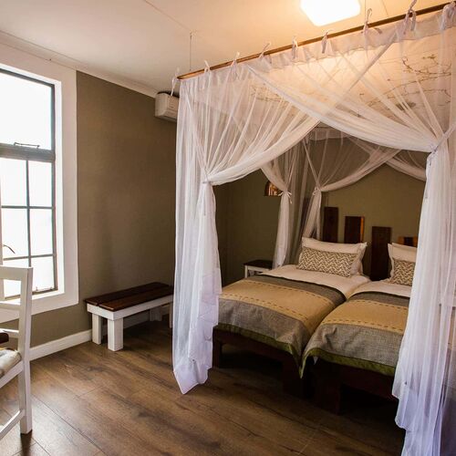 Gæsterne kan vælge mellem forskellige værelsestyper, herunder standard tvillingeværelser beliggende i gårdhaven med udsigt over swimmingpoolområdet, standard familieværelser med åbent rum og 2 enkeltsenge samt 2 køjesenge, standard tredobbeltværelser med udsigt over Kalahari-savannen, komfort tvillingeværelser med åben planløsning og udsigt over savannen samt komfort familieværelser med to separate soveværelser.