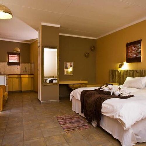 Khorixas tilbyder forskellige typer af indkvartering, herunder hytter, enkeltværelser og campingpladser for at imødekomme forskellige typer af rejsende.