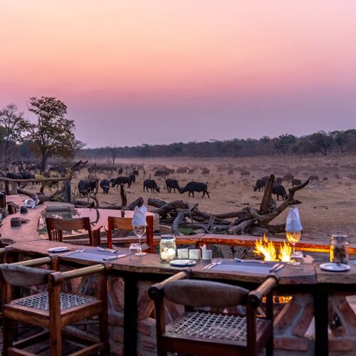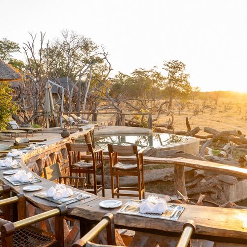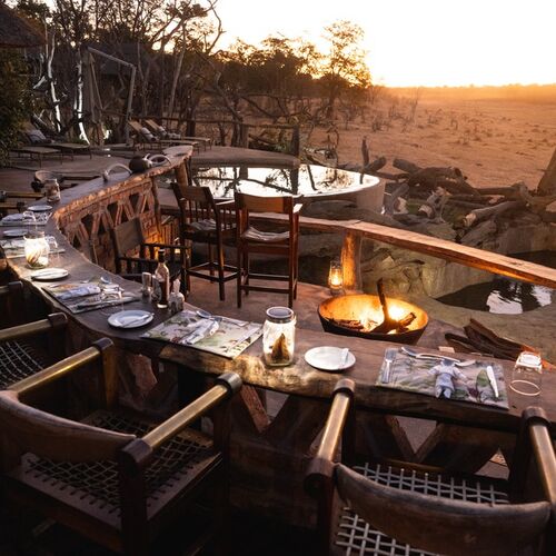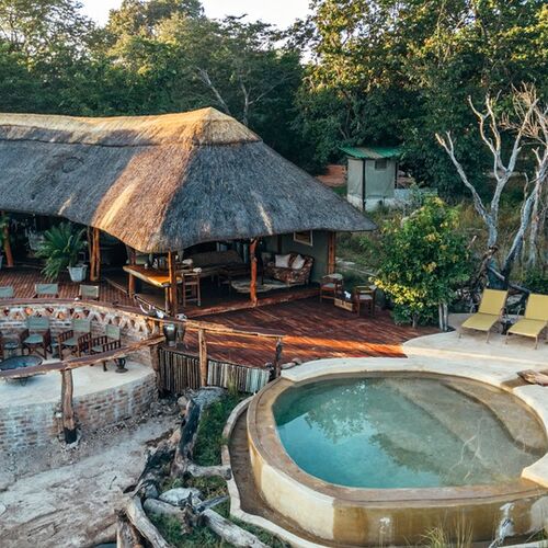 Lodgen ligger i hjertet af den afrikanske bush, og udover værelserne/teltene er der swimming pool og fotografi-skjul. Fra de to ildsteder er der udsigt til vandhullet, hvor der kommer rigtig mange dyr.