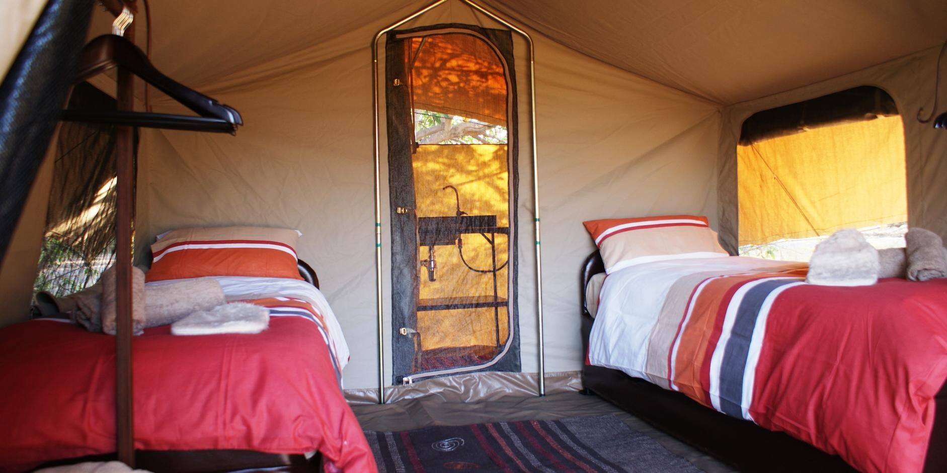 Khwai Bedouin camp is a relatively simple camp with just eight comfortable tents, all naturally equipped with comfortable beds, and en-suite bathroom and toilet.